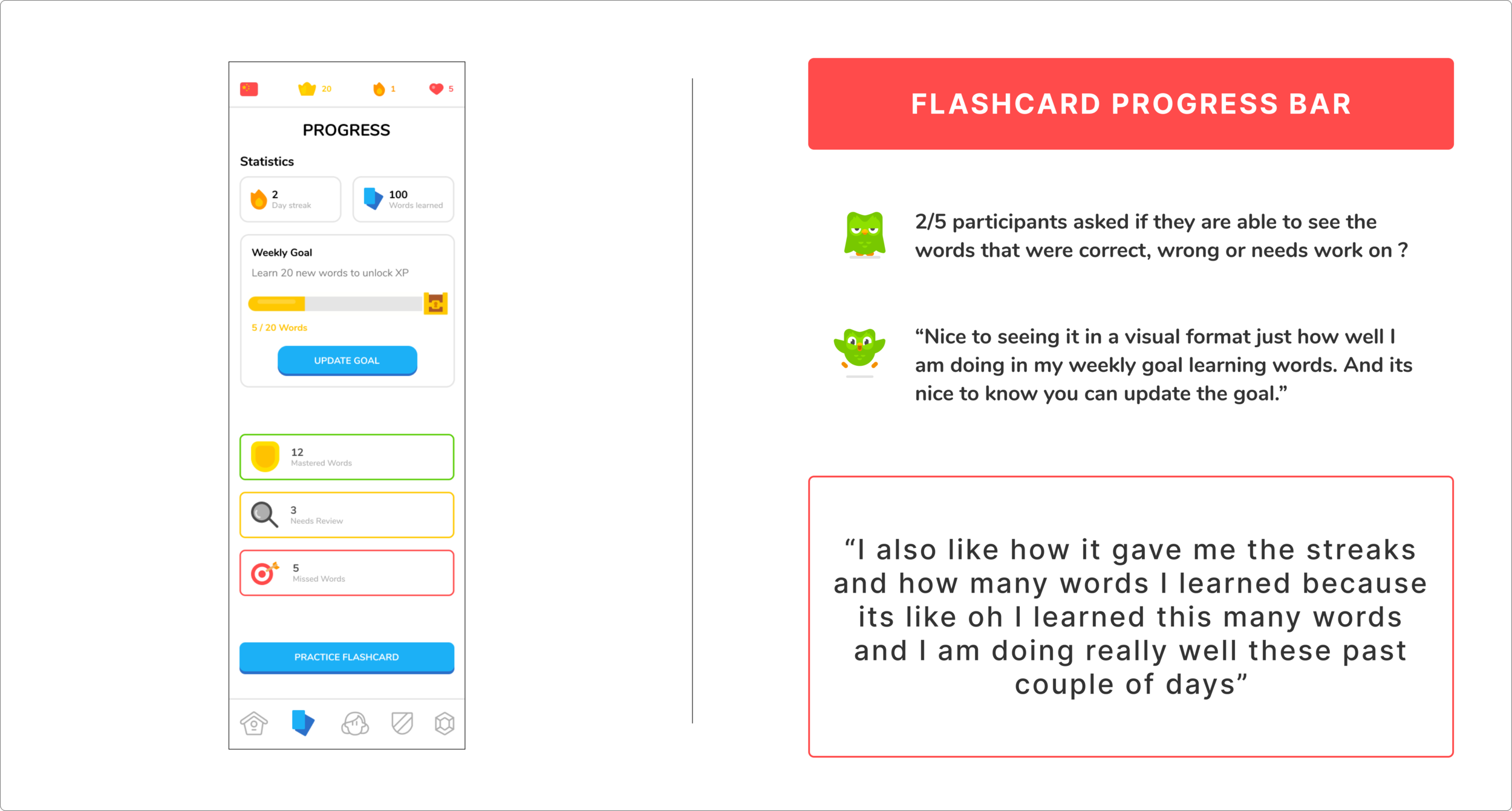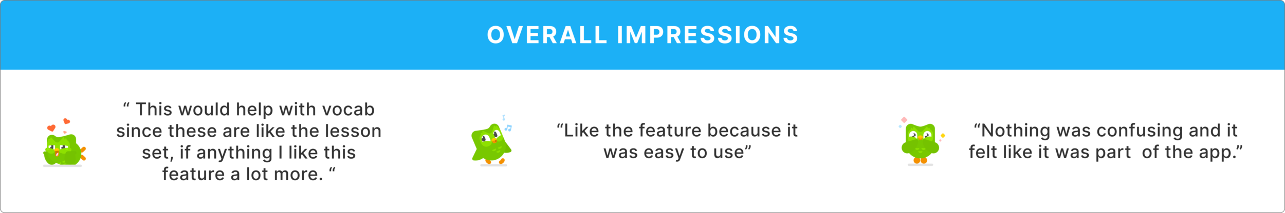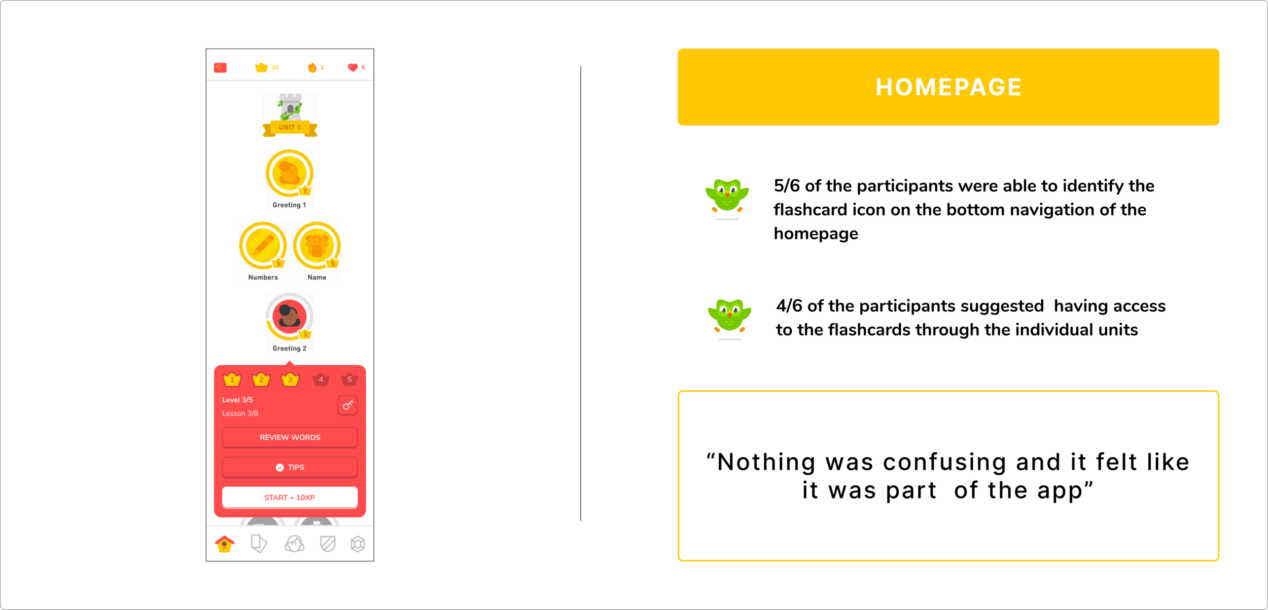 While learning about Duolingo, my research showed that there was a flashcard feature that was sunsetted in 2020, called Tinycard. After reviewing the Tinycard user based, I started off with the assumption that a flashcard feature would be an effective learning tool to supplement users on their language learning journey on Duolingo.