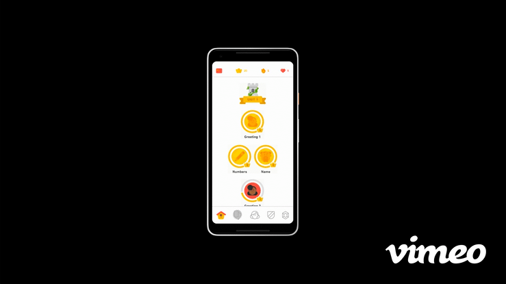 Duolingo is currently set up as a level system where you practice in different categories set for that level. Each category uses a combination of methods to teach words such as listening to pronunciation, voice recording, creating phrases by clicking on correct words, voice recording and matching pairs using images & texts. As you move on to the next level the difficulty increases.